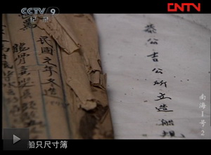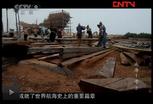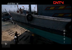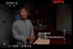 2011年9月中央CCTV-9纪录台“南海一号”拍摄组来泉港峰尾黄氏“衍泽堂”拍录,了解建造古船方法及古船下海过程。